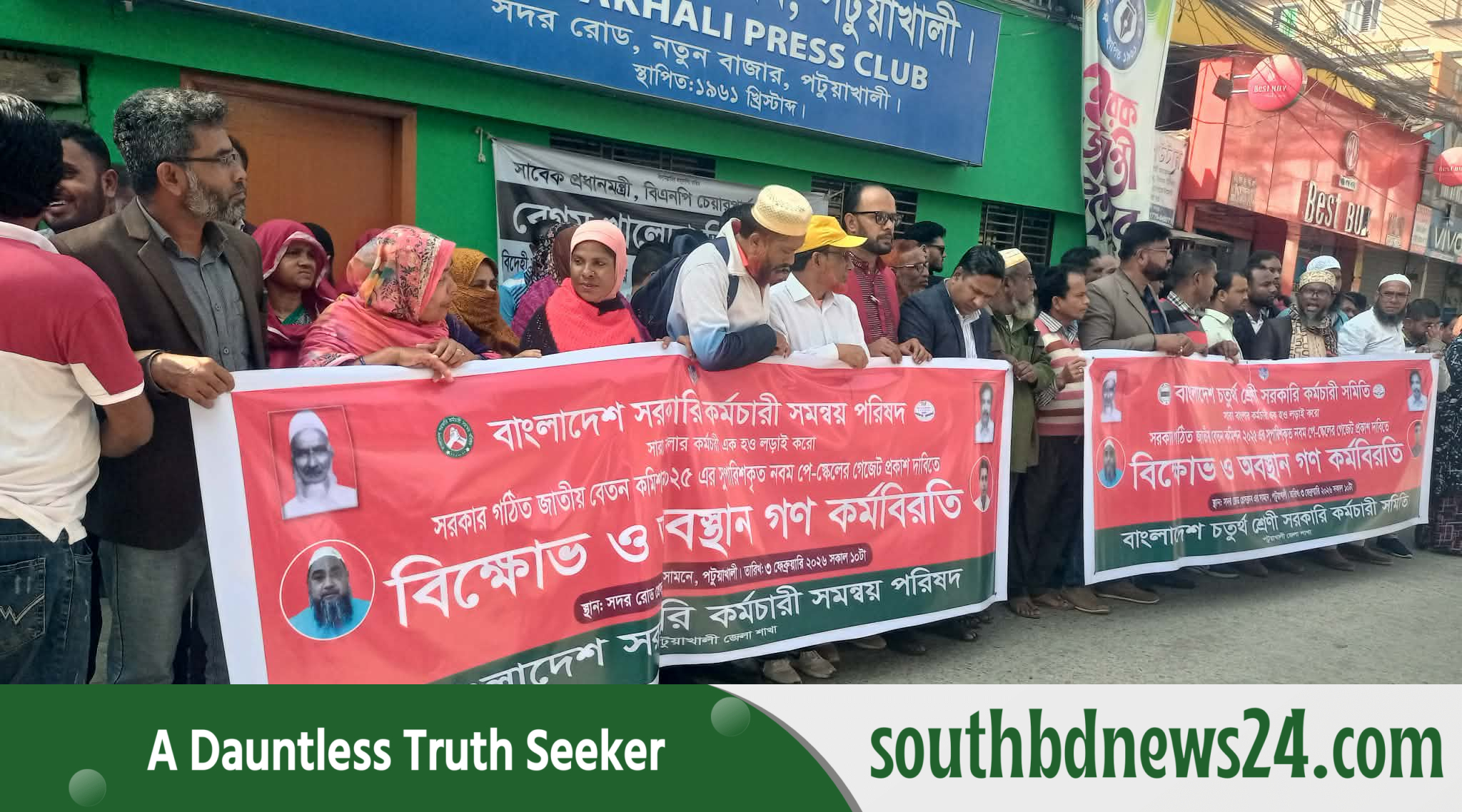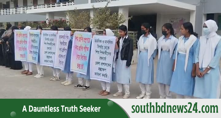 গণফেল করানোর প্রতিবাদে পটুয়াখালী কালেক্টরেট স্কুল এন্ড কলেজের নবম শ্রেণির শিক্ষার্থী ও অভিভাবকদের মানববন্ধন
