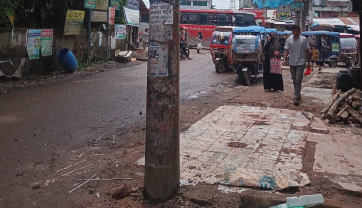 গৌরনদীর গুরুত্বপূর্ণ সড়কের মাঝে বৈদ্যুতিক খুঁটি; যান চলাচলে মারাত্মক ঝুঁকি