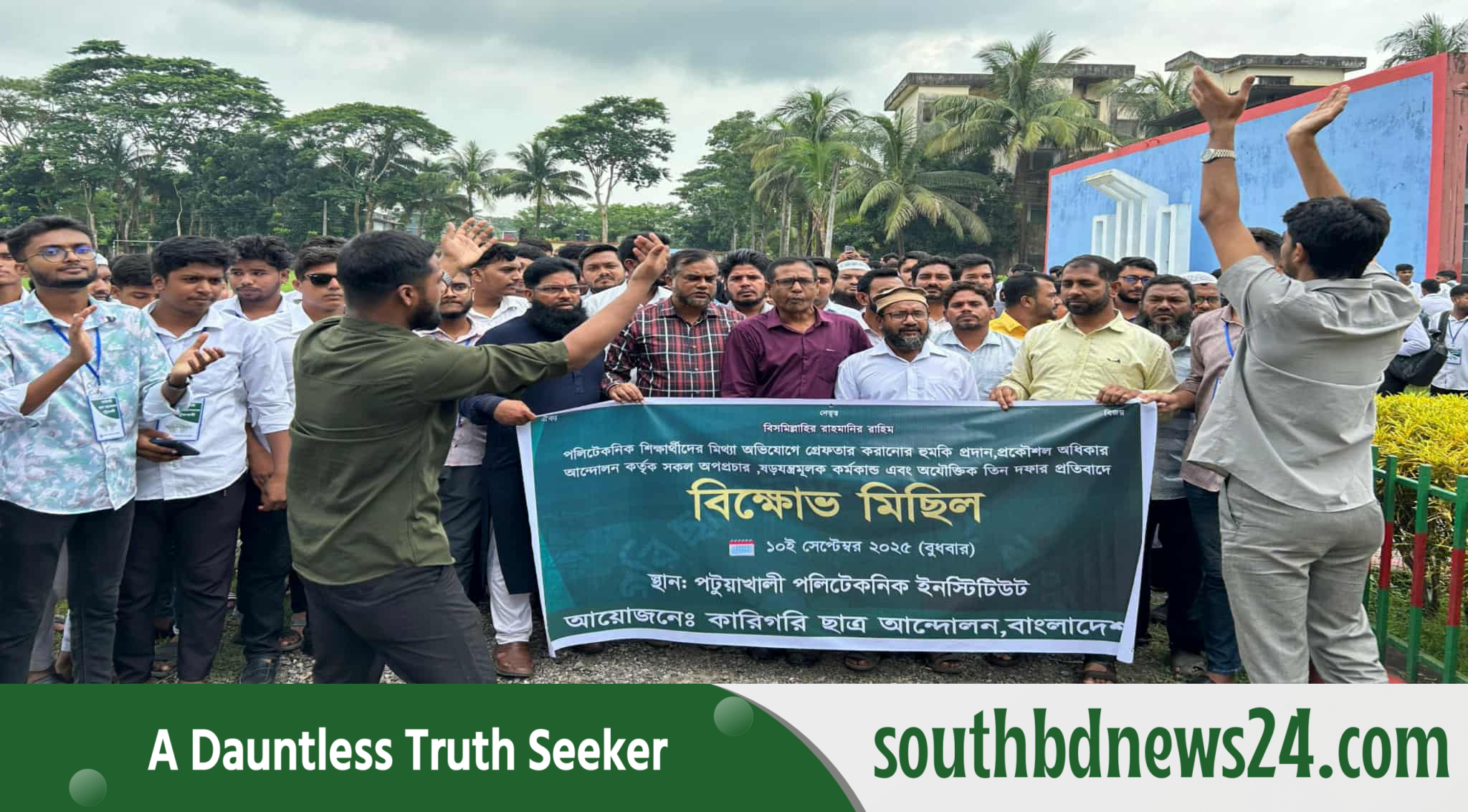 বুধবার (১০ সেপ্টেম্বর) দুপুরে পটুয়াখালী পলিটেকনিক ইনস্টিটিউটের হলরুমে এক আলোচনা সভা অনুষ্ঠিত হয়। পরে সভা শেষে একটি প্রতিবাদ মিছিল বের হয়ে শহরের বিভিন্ন সড়ক প্রদক্ষিণ করে ইনস্টিটিউটের মূল ফটকে এসে শেষ হয়।