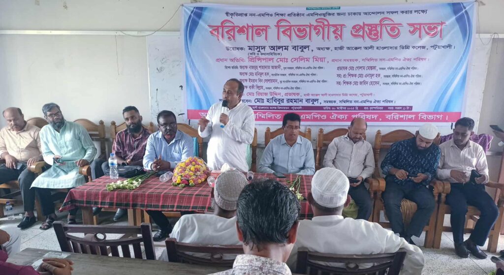 জালাল আহমেদ, প্রধান প্রতিবেদক: স্বীকৃতি প্রাপ্ত নন-এমপিও শিক্ষা প্রতিষ্ঠান এমপিওভুক্তির জন্য ২ নভেম্বর ঢাকায় আন্দোলন সফল করার লক্ষ্যে বরিশাল বিভাগীয় নন- এমপিও শিক্ষদের এক প্রস্তুতি সভা অনুষ্ঠিত হয়েছে।