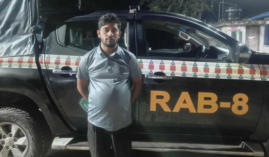 সাউথ বিডি নিউজ ২৪ ডেস্ক: সুনির্দিষ্ট তথ্য ও গোপন সংবাদের ভিত্তিতে র্যাব-৮, সিপিসি-১, পটুয়াখালী ক্যাম্প ও র্যাব-৮, ভোলা ক্যাম্প এর যৌথ আভিযানিক দল গোপন সংবাদের ভিত্তিতে গত ৩১ অক্টোবর ২০২৫ইং তারিখ আনুমানিক রাত ১১:১৫ ঘটিকায় ভোলা জেলার লালমোহন থানাধীন থানা রোডস্থ জমজম হোটেলের সামনে থেকে মারামারি ও হত্যা চেষ্টা মামলার এজাহার নামীয় প্রধান আসামী মোঃ আল-আমীন চৌকিদার (৩৫) পিতা- কালাই চৌকিদার, সাং- চন্দ্রপাড়া, ০৭ নং ওয়ার্ড, থানা- বাউফল, জেলা-পটুয়াখালী-কে গ্রেফতার করতে সক্ষম হয়।