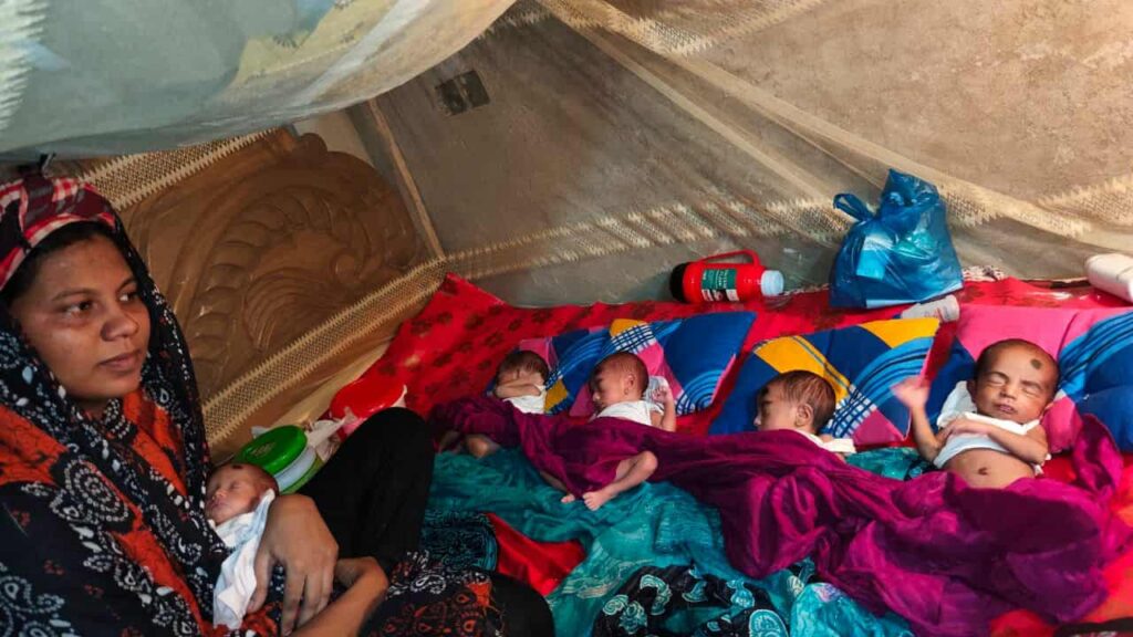 সোহেলের শাশুড়ি শাহনাজ বেগম জানান, “আমার তিন নাতি ও দুই নাতনির নাম রাখা হয়েছে হাসান, হোসাইন, মোয়াজ্জেম, লাবিবা ও উমামা। সিজার ছাড়াই স্বাভাবিকভাবে এদের জন্ম হয়। অনেকে এসে দেখে গেছেন, সাহায্যের আশ্বাসও দিয়েছেন, কিন্তু এখন পর্যন্ত কেউ সহযোগিতা করেননি। মা-মেয়ে মিলে সারাদিন বাচ্চাগুলোর যত্ন নিচ্ছি, এতে আমাদেরও শারীরিক কষ্ট হচ্ছে।”