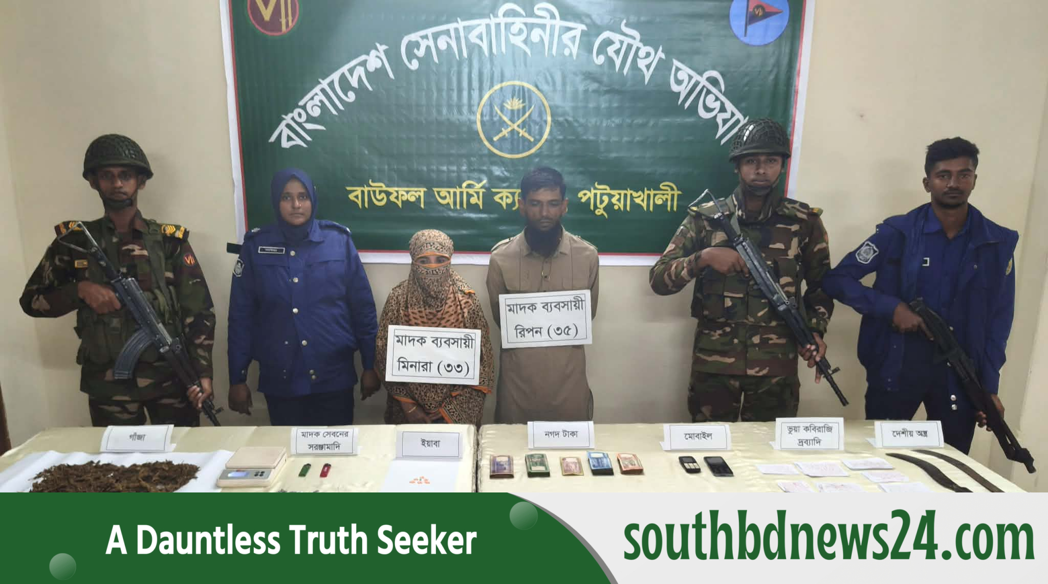 বাউফলে সেনাবাহিনীর অভিযানে ইয়াবা ও গাঁজাসহ দুই মাদক ব্যবসায়ী স্বামী-স্ত্রী আটক