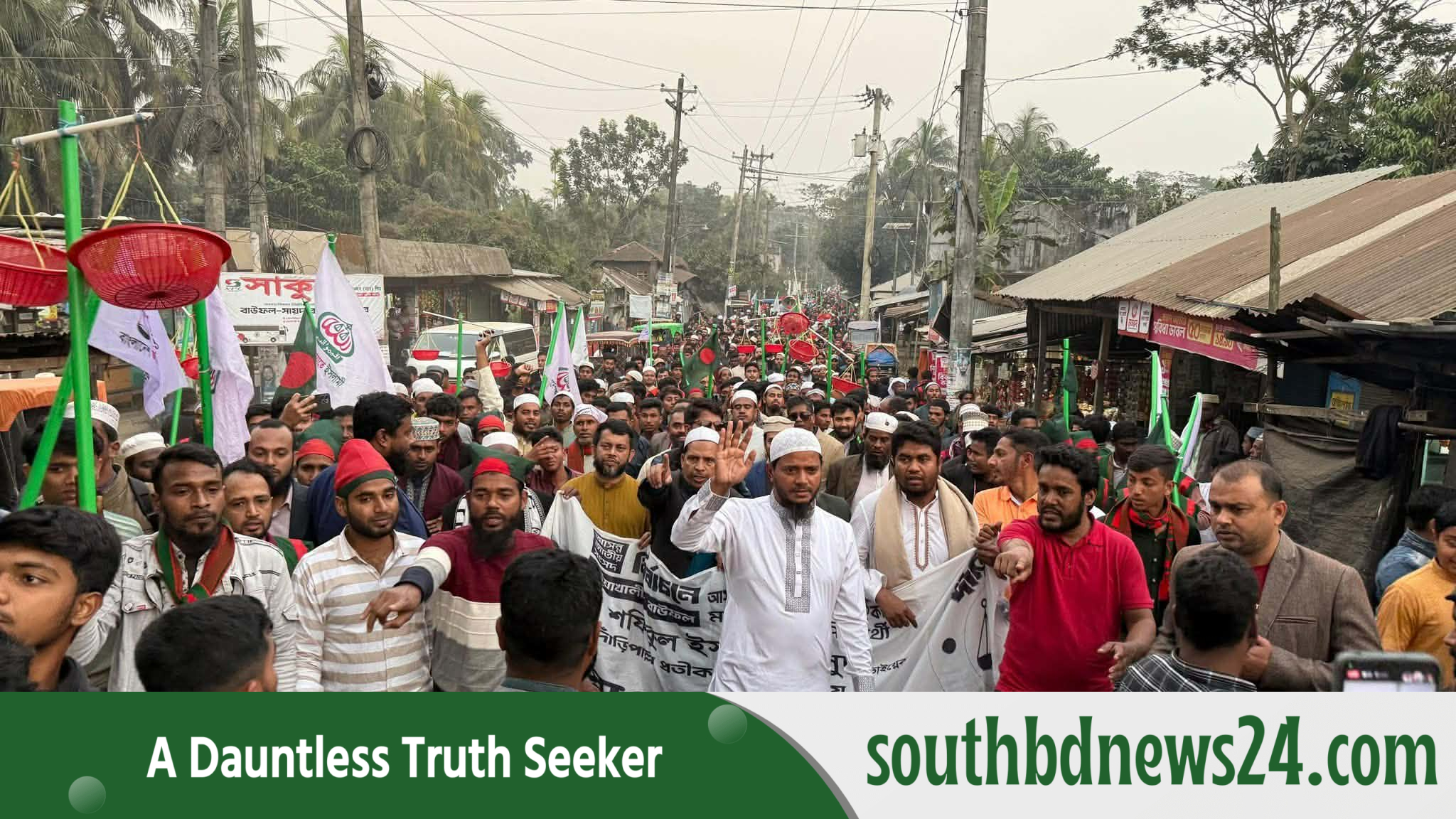 বাউফলে প্রার্থী ড. মাসুদের নেতৃত্বে দাঁড়িপাল্লা প্রতীকের স্বাগত মিছিলটি যেন জনসমুদ্র