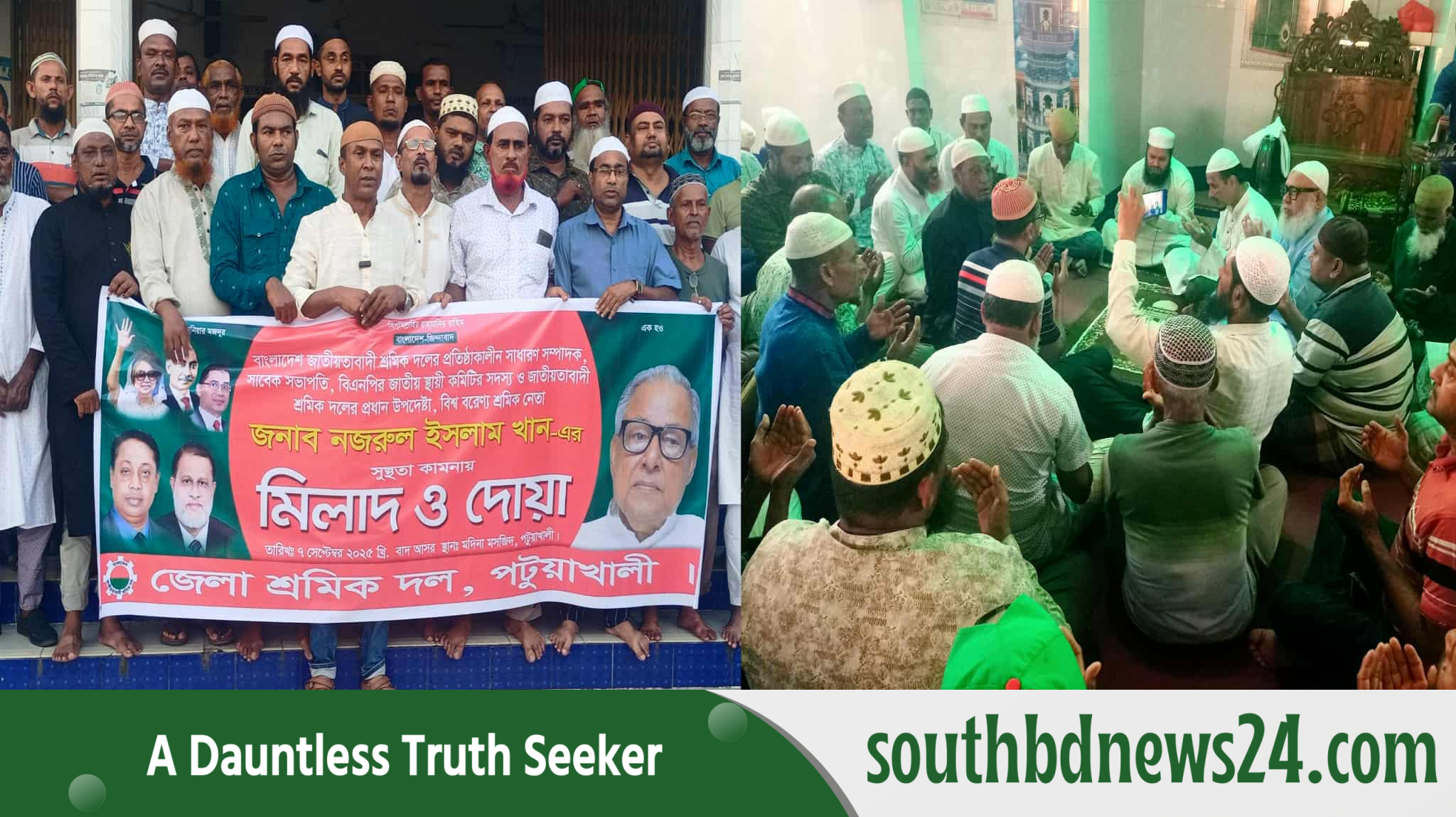 বিএনপির স্থায়ী কমিটির সদস্য নজরুল ইসলাম খান’র সুস্থতা কামনায় পটুয়াখালীতে শ্রমিক দলের দোয়া-মিলাদ অনুষ্ঠিত