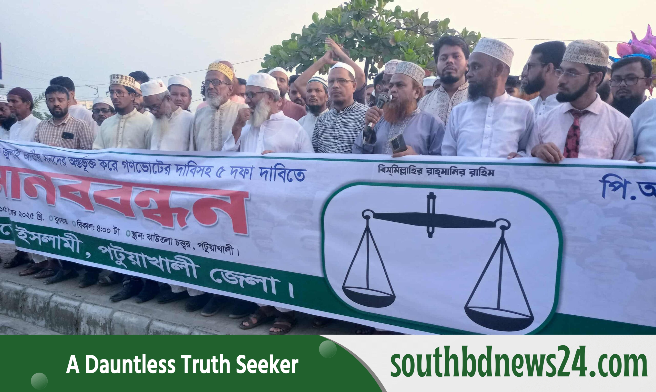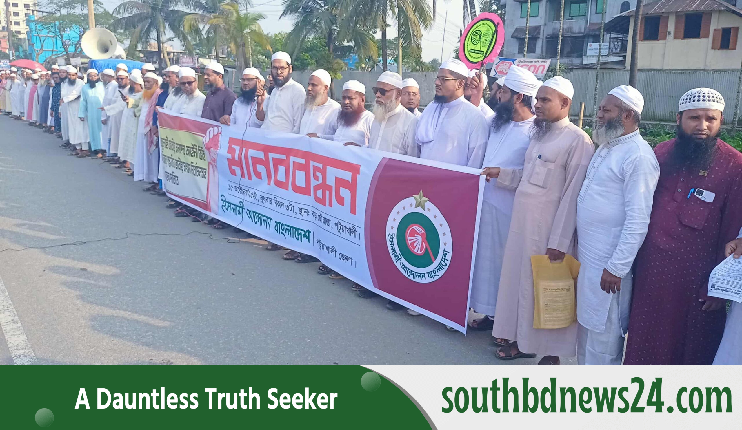 পটুয়াখালীতে ইসলামী আন্দোলন বাংলাদেশ’র মানববন্ধন ও সমাবেশ অনুষ্ঠিত